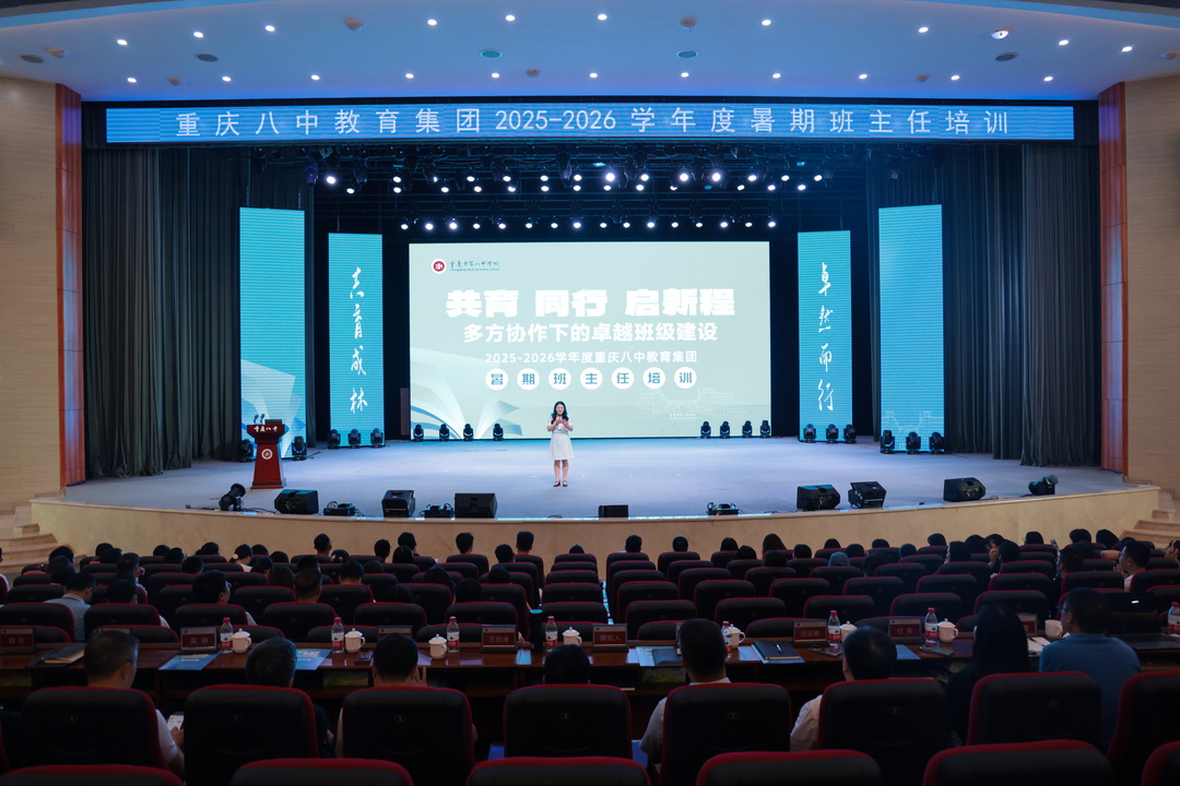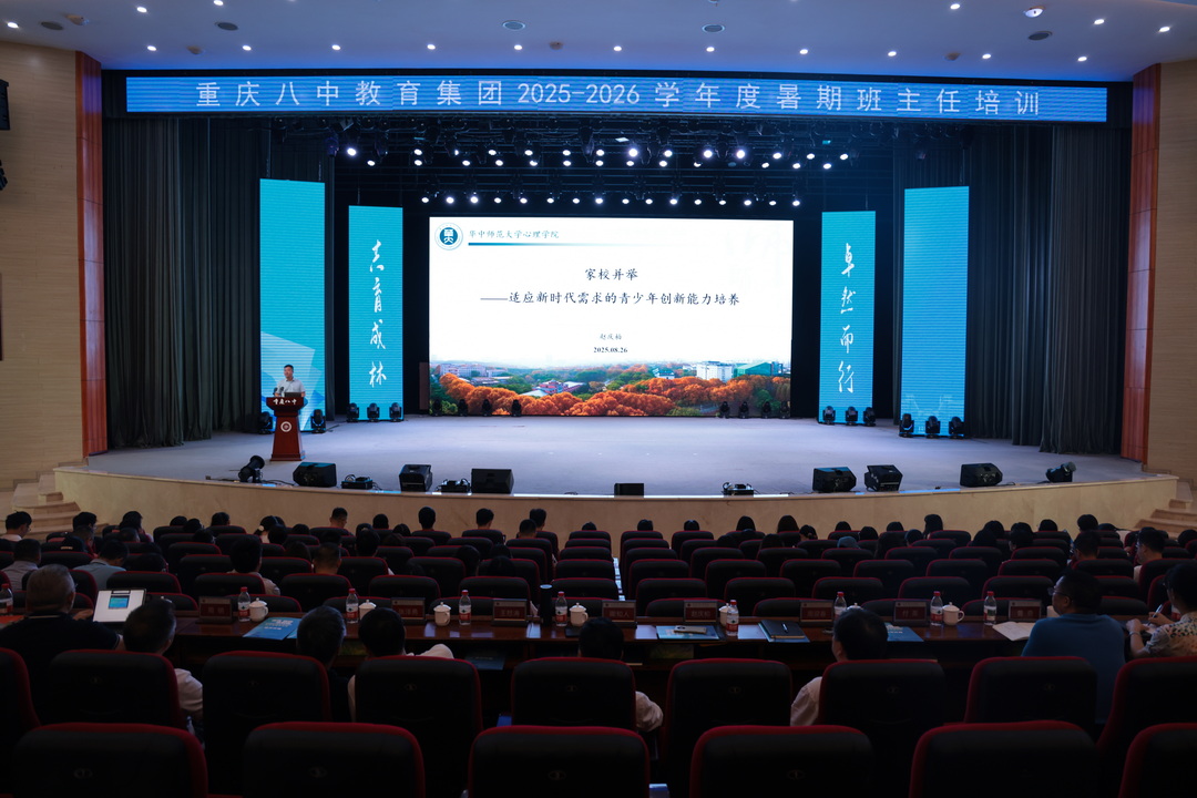 2025年8月26日,重庆八中教育集团2025-2026学年度暑期班主任培训在渝北校区大礼堂隆重启幕。本次培训以“同行共育启新程:多方协作下的卓越班级建设”为主题,汇聚了高校专家、集团各校区领导、全体班主任、心理教师及新入职教师,旨在通过专家引领、经验共享与智慧碰撞,为新学期的育人工作蓄力赋能。