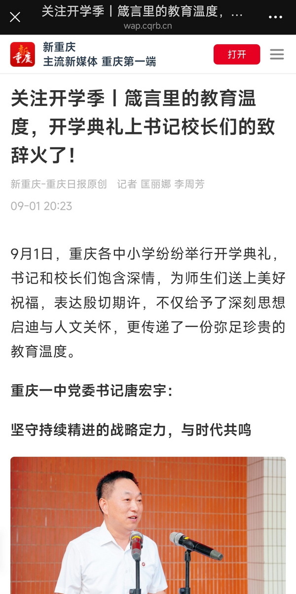 9月1日,重庆各中小学纷纷举行开学典礼,书记和校长们饱含深情,为师生们送上美好祝福,表达殷切期许,不仅给予了深刻思想启迪与人文关怀,更传递了一份弥足珍贵的教育温度。