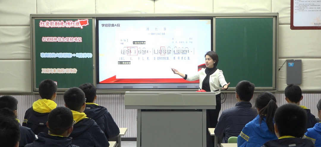 《绣红旗》作为与红岩精神紧密关联的经典音乐作品,杨阳老师的课例精准把握作品文化内核——既深度挖掘巴渝地方音乐特色,又巧妙融入思政教育元素,教学设计兼具创新性与感染力。这一课例不仅实现了对地方音乐资源的有效开发,更践行了“以乐载道、以美育人”的教育目标,充分体现了杨阳老师扎实的专业功底与创新教学能力。