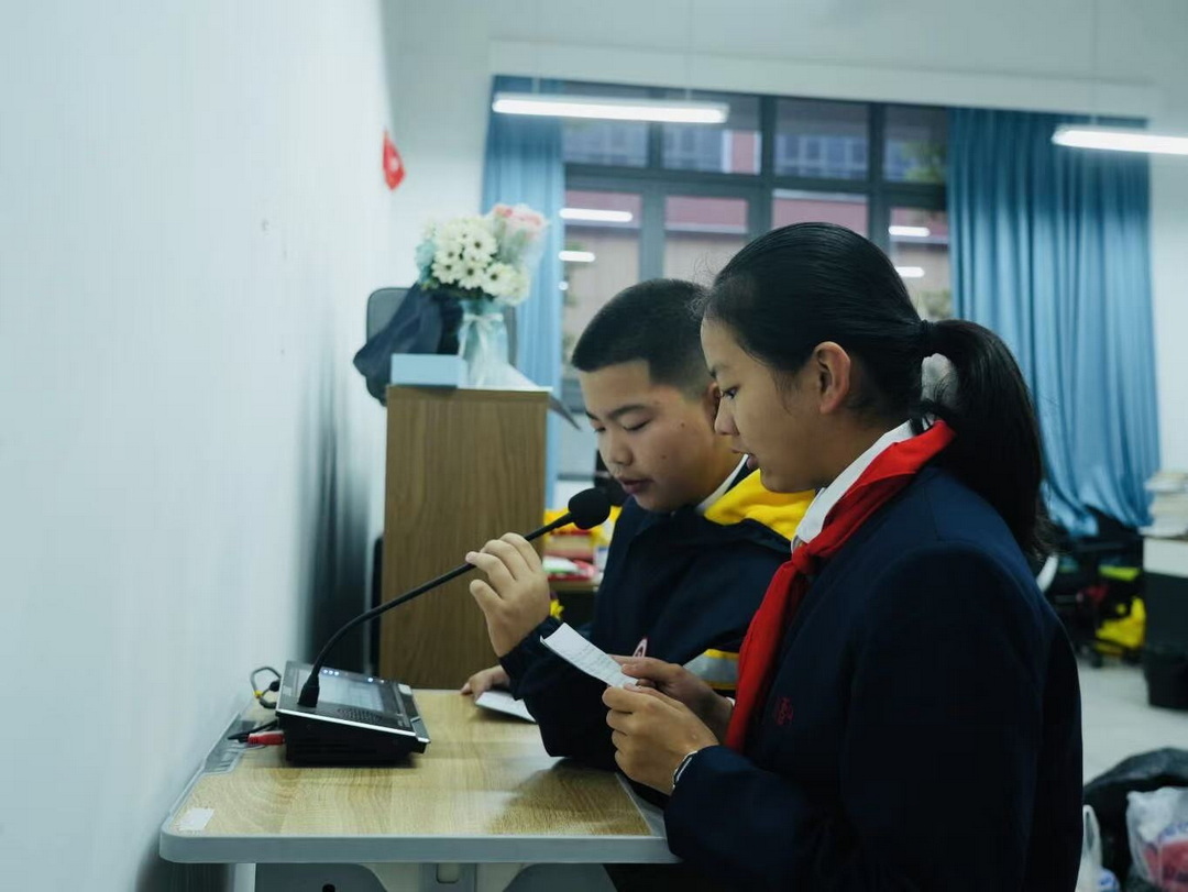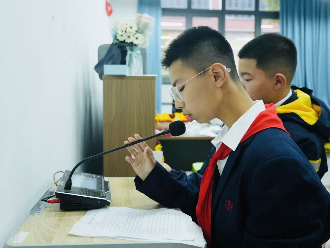 学生代表初一1班的邱渝翔同学也在国旗下发表了题为《你的努力终将照亮你的路——半期考试宣言》的演讲。他分享了自己的学习心得与复习方法,号召同学们制定清晰的复习计划,梳理知识点框架,整理错题并进行针对性练习,同时强调努力的过程本身就是一种成长,鼓励大家在努力中坚持,在坚持中收获。